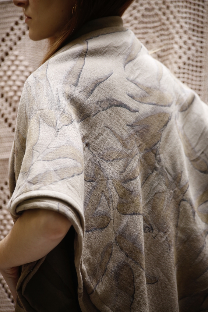 Estampado à mão com a técnica de impressão botânica, com folhas de eucalipto.
