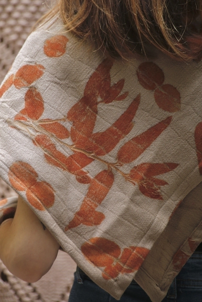 Estampado à mão com a técnica de impressão botânica, com folhas de eucalipto.